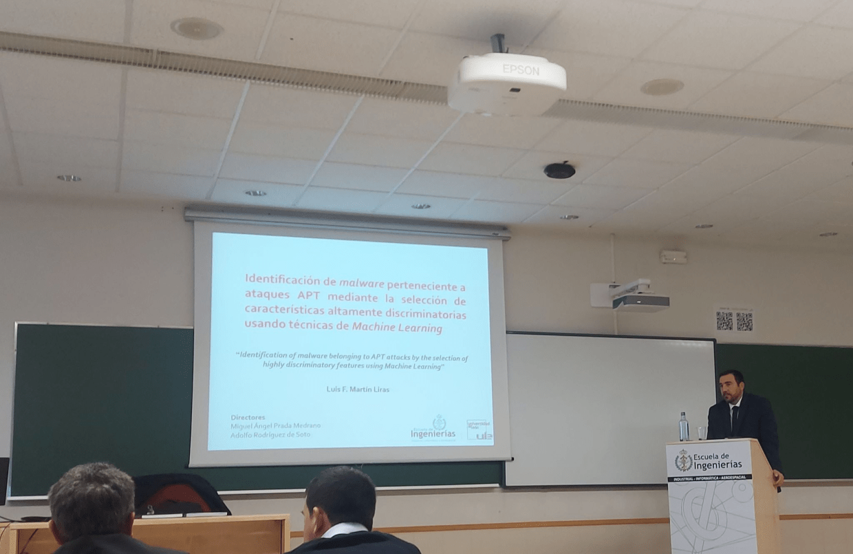 El pasado de 3 febrero, nuestro compañero Luis Martín Liras, ha culminado con éxito la obtención de su doctorado en «Machine learning aplicado a la seguridad de la información». Se trata de un trabajo que une varios campos completamente diferentes: el análisis de malware, los ataques APT, el aprendizaje automático. Nuestra más sincera enhorabuena Luis,